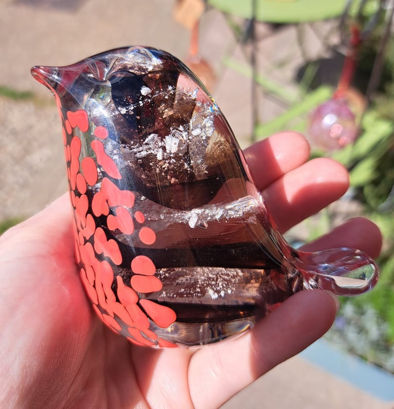 Have the ash spiraled inside a glass robin with a brown body and the distinctive red breast